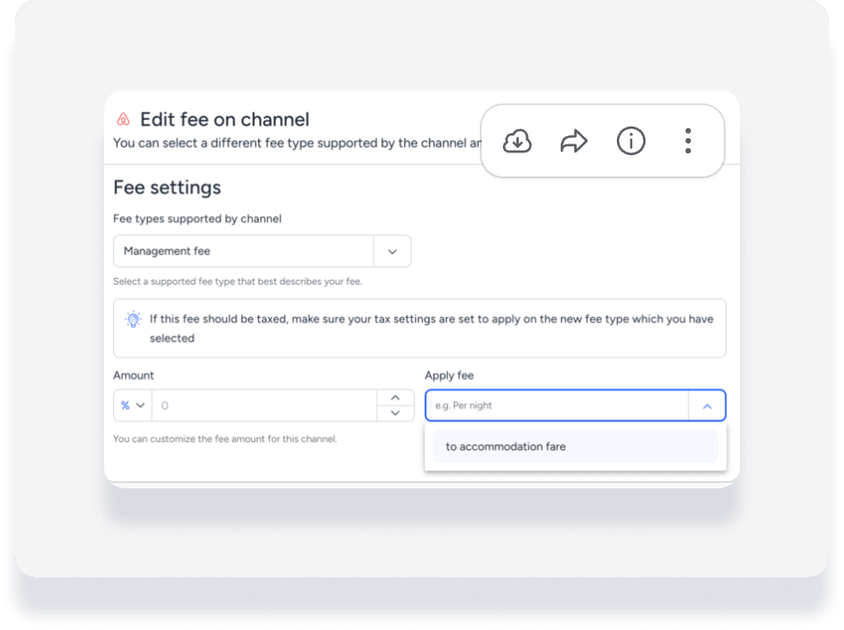 For listing-specific fees, toggle on Custom listing fees in the listing settings. Then, enable Sync fee to channels to make the fee appear on Airbnb.