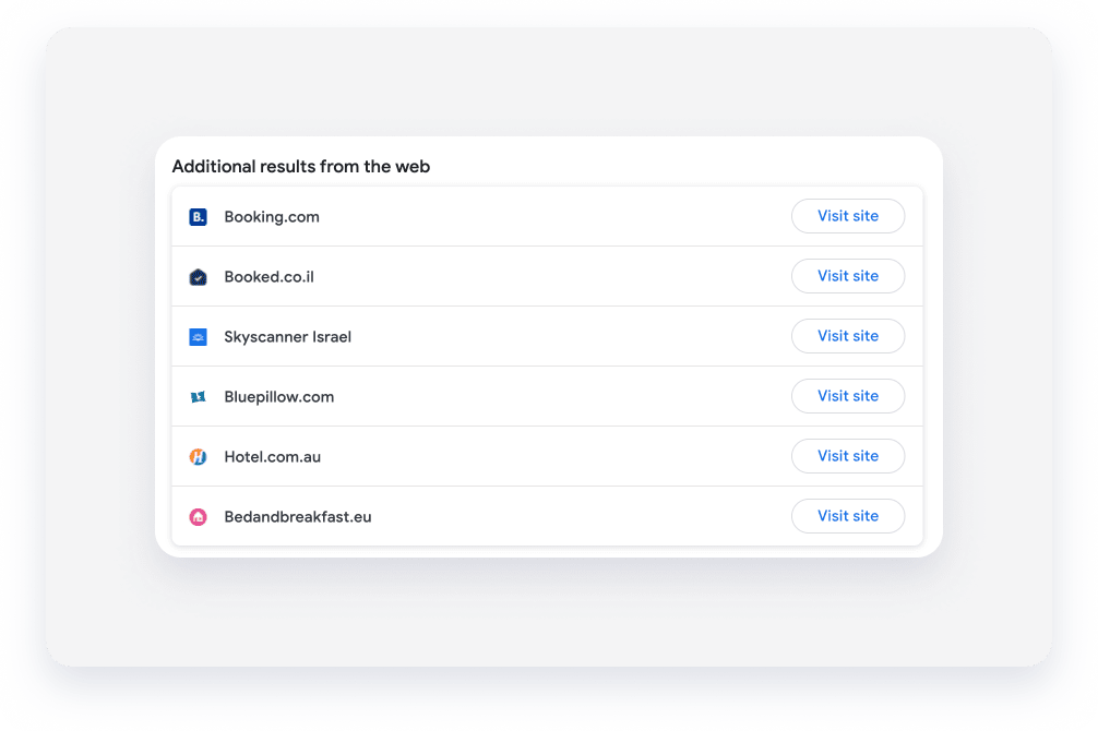 If you listed your listing in online travel agencies (OTAs) such as Booking.com or Expedia in addition to the Guesty Booking Engine, it may be displayed multiple times in Google Travel search results. This is because Google scans multiple booking platforms, including OTA websites, and presents their available listings.