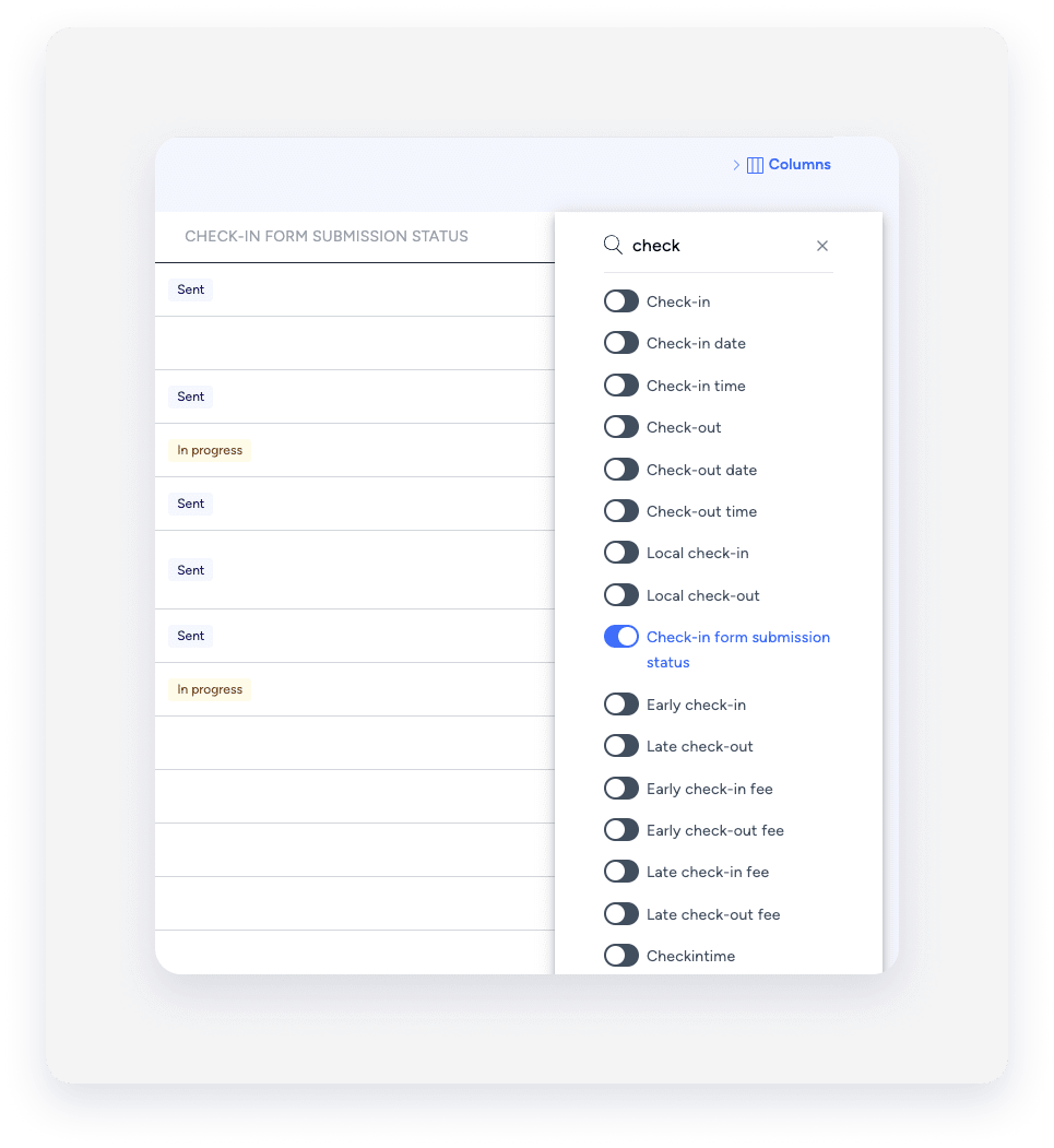 Create a reservation report and add the “Check-in form submission status" column.