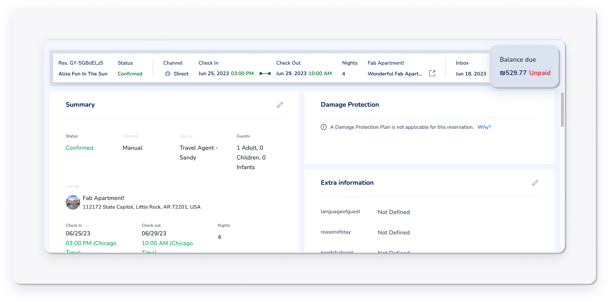 Check a reservation's payment status directly from the reservation page. The payment status displays at the top of the reservation, showing the current status and the relevant amount.