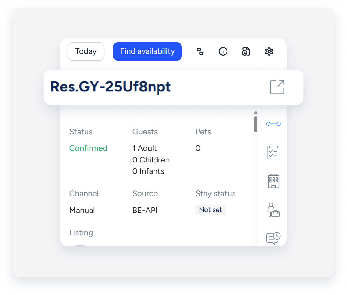Use the quick actions bar to manage reservations based on their status: before check-in, during the stay, and after check-out. Click