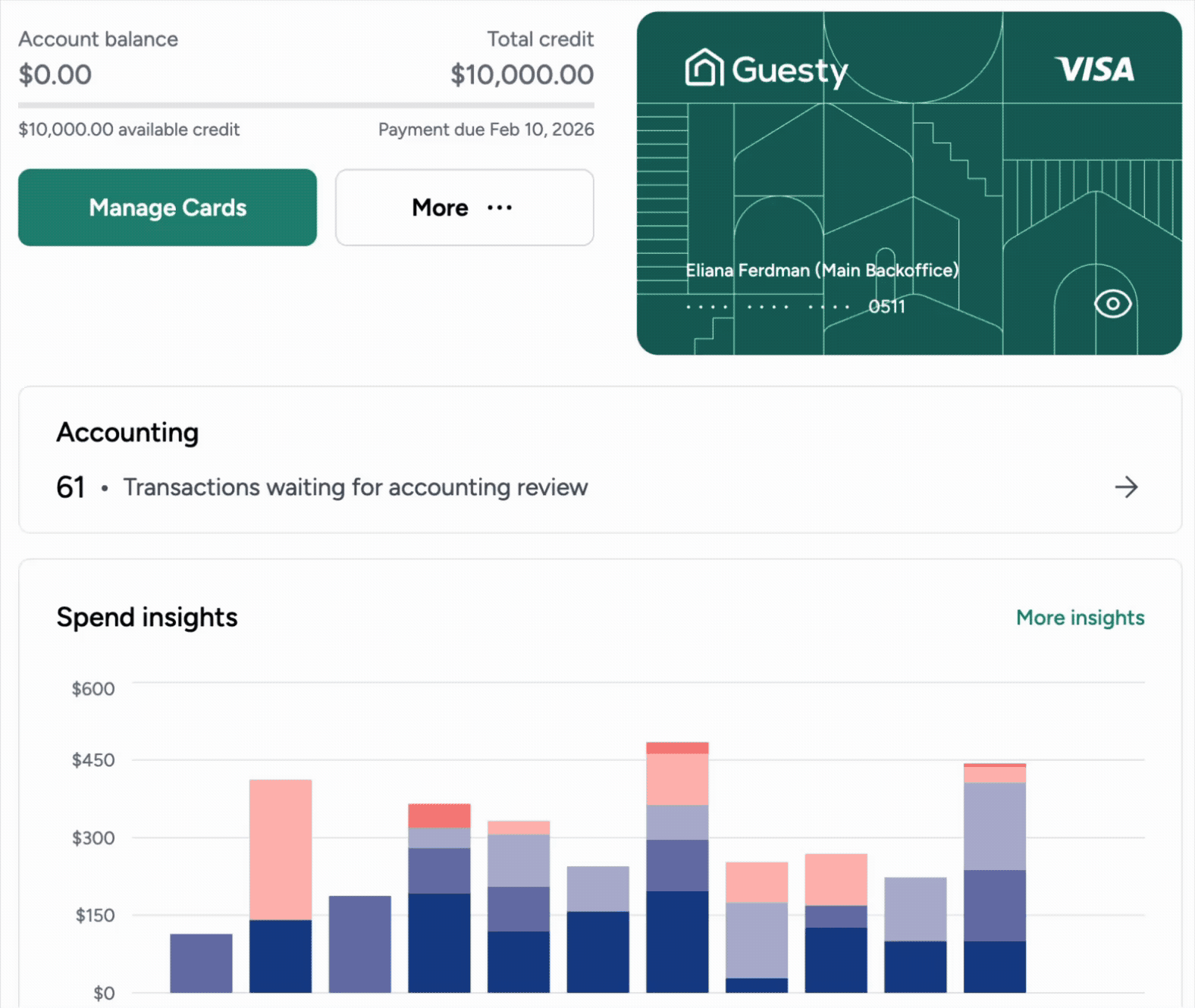 Manage your business spending by attributing Guesty Card transactions to specific properties, owners, or your property management company (PMC). Once you attribute a transaction, Guesty automatically generates an expense in the accounting ledger, ensuring your owner statements remain accurate and up to date.