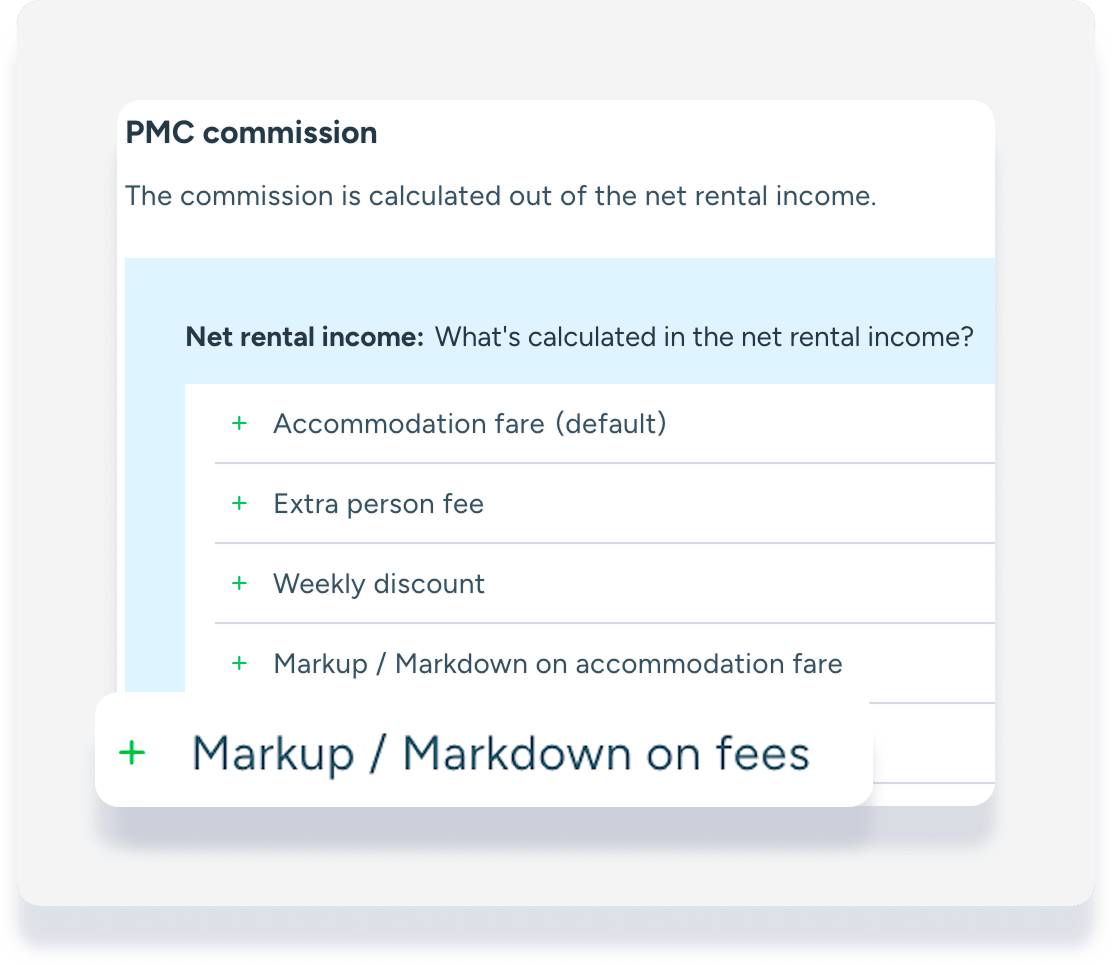 Distinct journal entries: Guesty generates separate entries for the net fee and the markup portion.