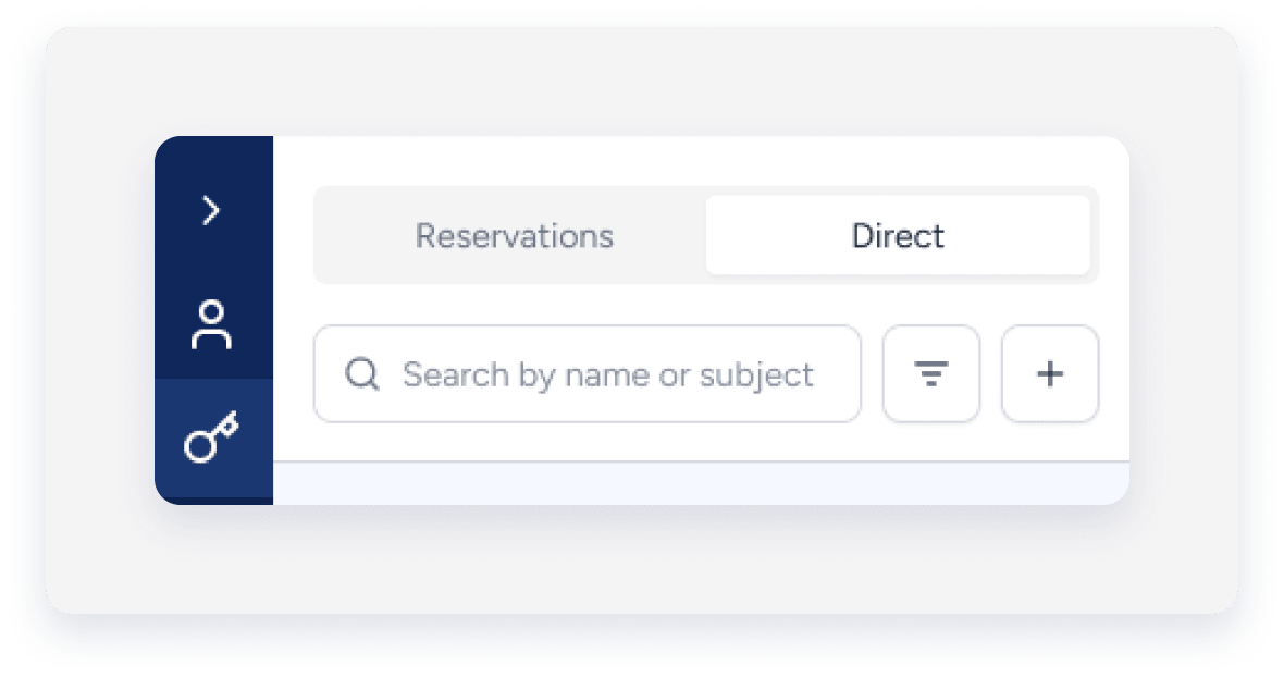 - Owner reservations feature a key logo on the contact icon and display "Owner" alongside the owner's name.