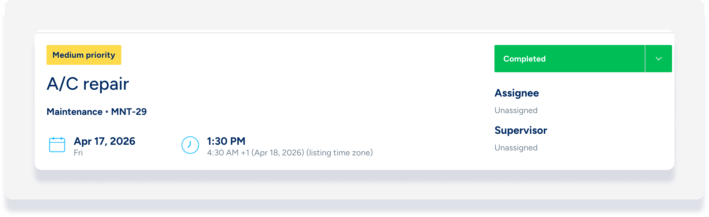 Agregar gastos a una tarea basada en calendario, una serie de tareas o una tarea automática proporciona contexto al vincular los costos directamente con la información de la tarea. Puede dividir el costo entre el PMC y el propietario, y el ID de la tarea aparece en la declaración del propietario para facilitar la consulta.