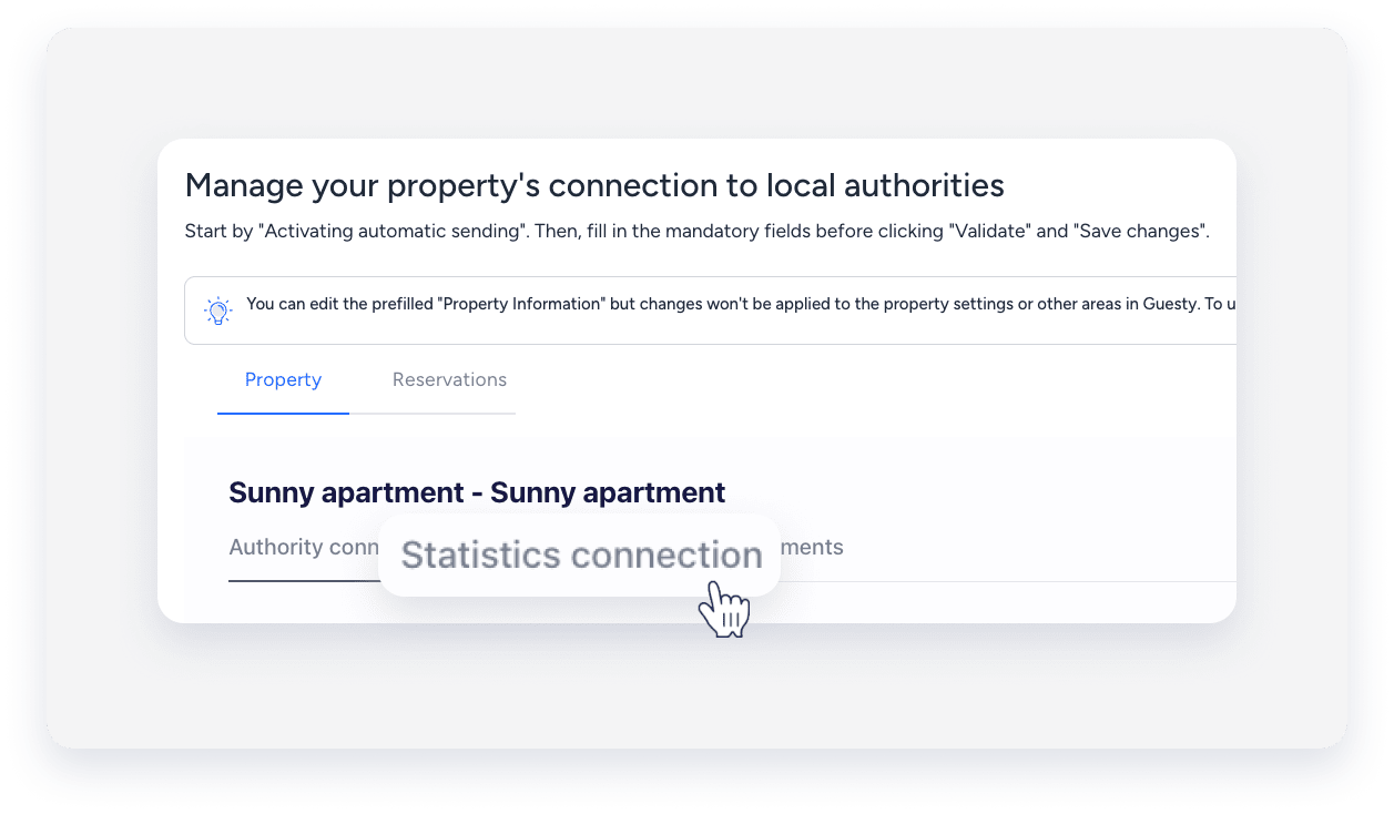 Los informes estadísticos se generan automáticamente según los datos de su reserva. Estos incluyen la nacionalidad del huésped, la longitud de la estancia y los detalles del alojamiento.