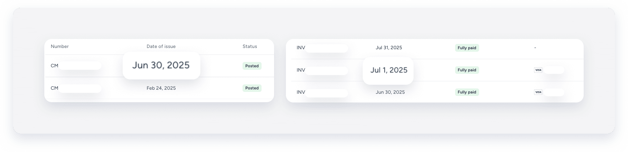 Guesty aplica automáticamente los créditos y deduce el importe de tu próxima declaración de facturación. El crédito aparece en tu factura. Por ejemplo, un crédito emitido el 30 de junio se aplica a la primera factura que recibas después de esa fecha.