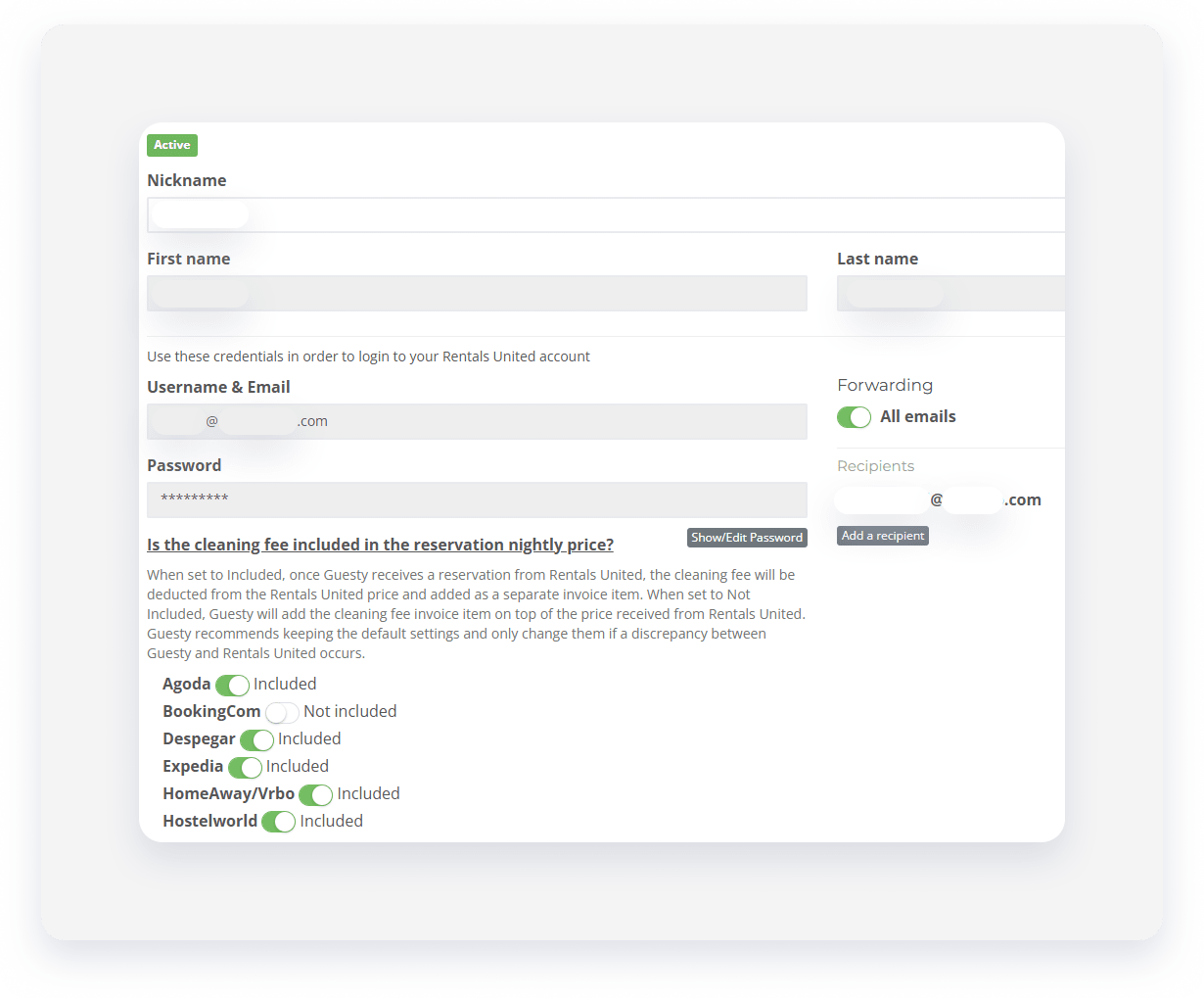 Tu correo electrónico de integración te asignará al conectar Rentals United con Guesty. Debes utilizar esta dirección (que también es tu nombre de usuario) en todos los canales conectados con Rentals United.