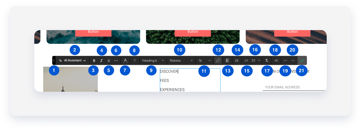 Utiliza el botón Asistente de IA para generar títulos, crear párrafos personalizados y editar contenido. |