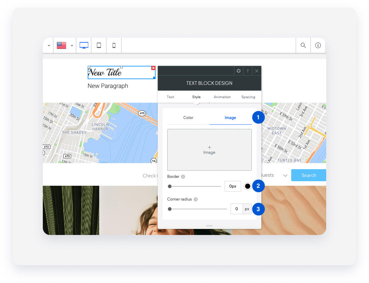 Cada widget de texto (texto o título) incluye dos opciones ajustables. Un conjunto se puede ajustar en línea, mientras que el otro abre un menú emergente con opciones adicionales.