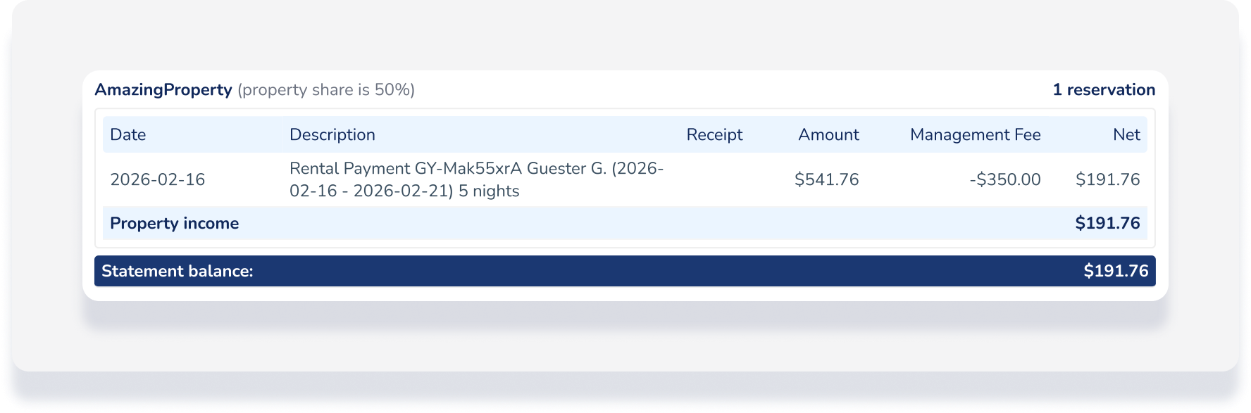 • Établissez des relevés pour les propriétaires même en l'absence de revenus générés.