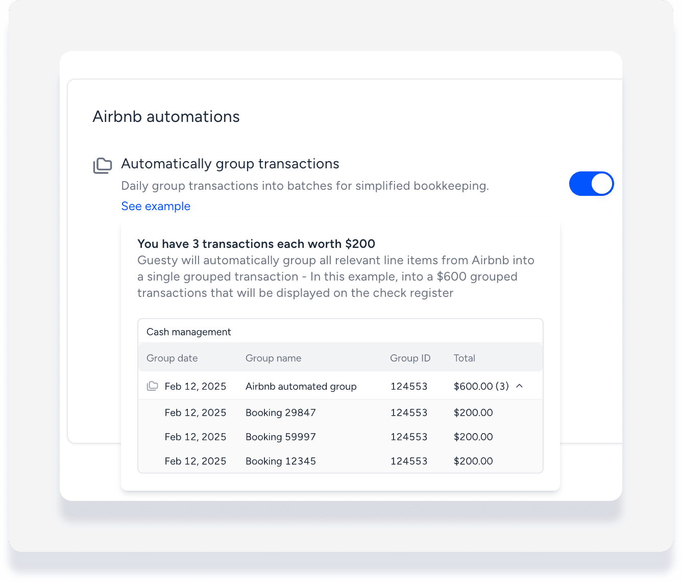 Activer l’automatisation des transactions de groupe Airbnb