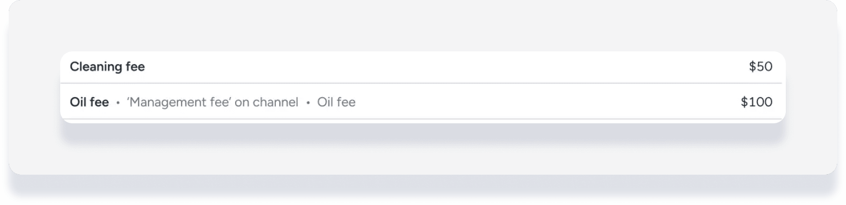 Si plusieurs frais Guesty sont associés à des frais de canal uniques, Guesty répartit le montant total proportionnellement. Cette répartition est automatiquement prise en compte dans vos rapports comptables afin de garantir que chaque catégorie de frais soit correctement créditée.