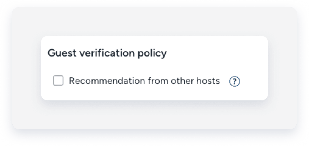 La réservation instantanée est disponible pour les voyageurs qui remplissent les conditions de réservation d'Airbnb. Vous pouvez également exiger une recommandation d'autres hôtes dans votre règlement intérieur, que les voyageurs doivent accepter pour activer la réservation instantanée. Cette politique de vérification signifie que seuls les anciens voyageurs Airbnb ayant reçu des avis positifs d’hôte, ou n'ayant reçu aucun avis, peuvent effectuer une réservation instantanée. Suivez les instructions pour définir votre politique de vérification dans le règlement intérieur de l'annonce.