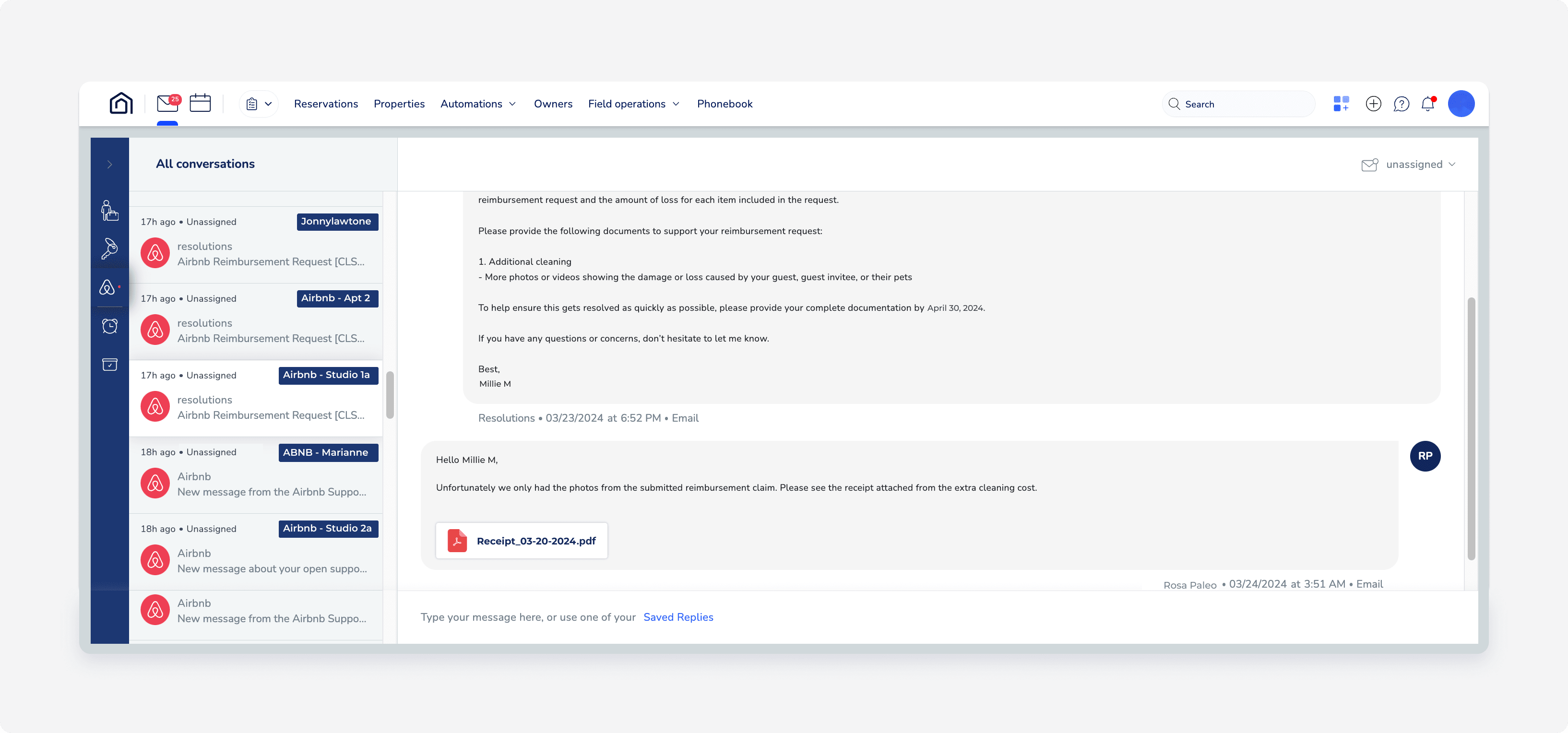 - Envoyez et recevez des messages à l’assistance Airbnb via Guesty