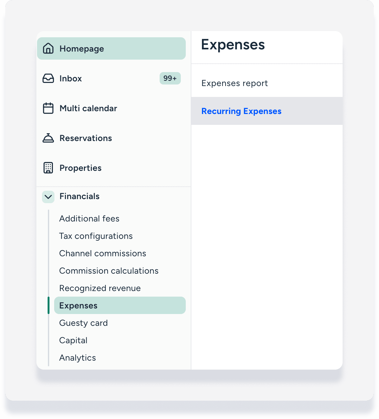 Le spese o gli addebiti possono essere associati a prenotazioni specifiche (per ospite, per soggiorno o per notte) oppure impostati per essere addebitati periodicamente (mensilmente o trimestralmente).